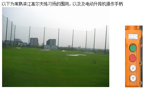 3、圍網更換工程施工。典型案例 1.江蘇常熟濱江公園高爾夫練習場圍網工程(35米高),以及電動升降機操作手柄。